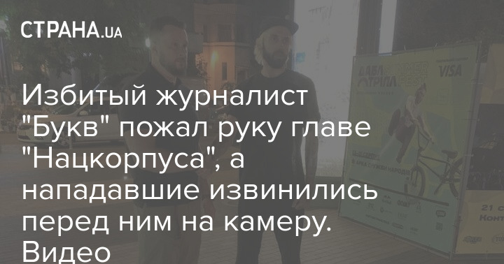 Избитый журналист "Букв" пожал руку главе "Нацкорпуса", а нападавшие извинились перед ним на камеру. Видео