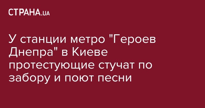 У станции метро "Героев Днепра" в Киеве протестующие стучат по забору и поют песни