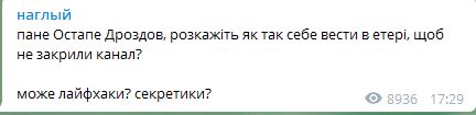 "Господин Остап Дроздов, расскажите, как так себе вести в эфире, чтобы не закрыли канал? Может лайфхаки? Секретики?".