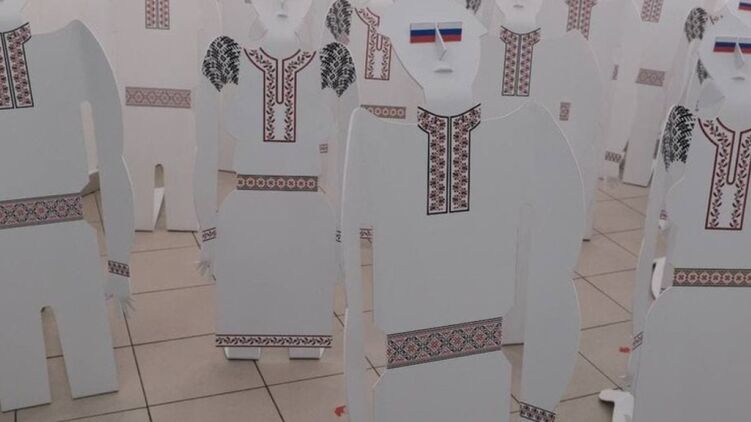 В Черновцах художник сделал инсталляцию "Хохлы" - люди на коленях с триколором на глазах. Его вызвали в СБУ