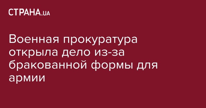 Военная прокуратура центрального региона открыла уголовное производство в отношении чиновников Главного военного представительства, которые приняли некачественную летнюю военную форму на сумму 15 млн грн. Об этом сообщает пресс-служба ведомства.