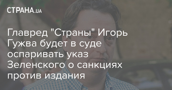 Главный редактор сайта "Страна.ua" Игорь Гужва заявил, что со следующей недели начнется работа по оспариванию в суде указа президента Владимира Зеленского о введении санкций СНБО против него и издателей "Страны".
