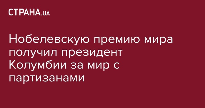 Нобелевскую премию мира в 2016 году получил колумбийский президент Хуан Мануэль Сантос за усилия по прекращению более чем 50-летней гражданской войны с партизанской группировкой FARC. Об этом сообщается в Twitter Нобелевского комитета.