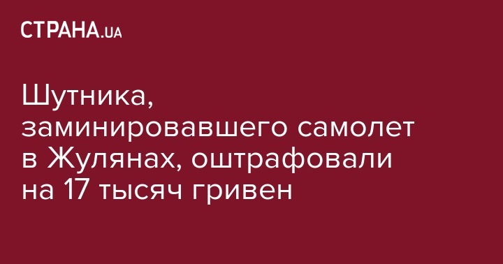Соломенский райсуд Киева за ложное сообщение о минировании самолета приговорил мужчину к выплате штрафа в 17 тысяч гривен. Об этом сообщает ГУ Нацполиции Киева.