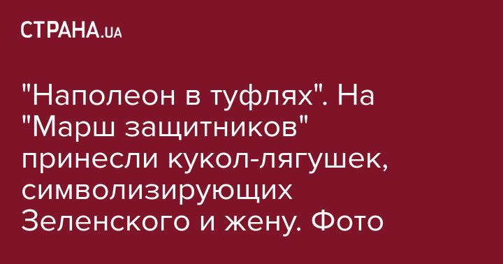 "Наполеон в туфлях". На "Марш защитников" принесли кукол-лягушек, символизирующих Зеленского и жену. Фото