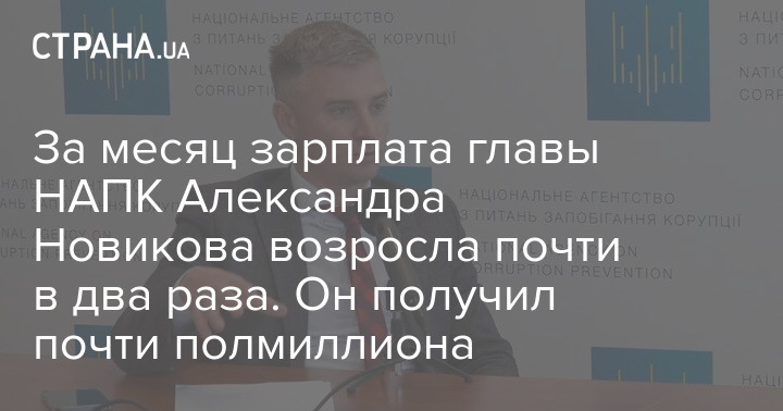 Зарплата главы Национального агентства по предотвращению коррупции Александра Новикова за июль текущего года составила 479 тыс. гривен, его заместителей - от 110,3 тыс. до 156 тыс. гривен.