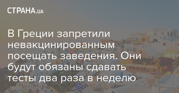 В Греции запретили невакцинированным посещать заведения. Они будут обязаны сдавать тесты два раза в неделю
