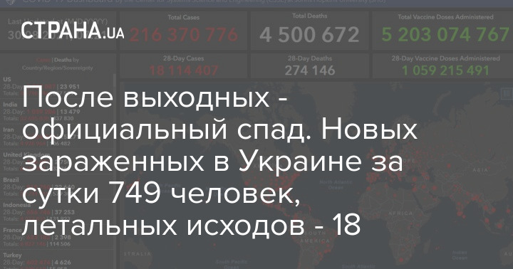 После выходных - официальный спад. Новых зараженных в Украине за сутки 749 человек, летальных исходов - 18