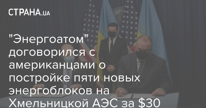 По итогам встречи президента Украины Владимира Зеленского с министром энергетики США ГП НАЭК "Энергоатом" подписала меморандум с американской электротехнической компанией Westinghouse electric. Согласно документу, совместными усилиями будут построены пять энергоблоков на сумму до $30 млрд. Первый будет возведен на Хмельницкой АЭС.