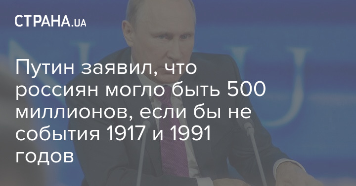 Президент РФ Владимир Путин заявил, что если бы не распад Российской империи в 1917 и СССР в 1991 году, то население РФ, вероятно, достигало бы 500 млн человек.