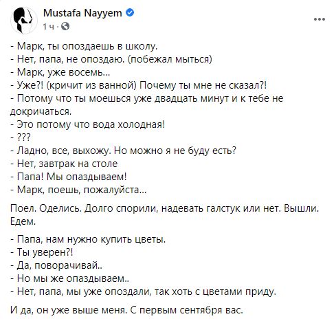 Замминистра инфраструктуры Мустафа Найем написал, каким было 1 сентября у его 13-летнего сына Марка, который уже выше его.
