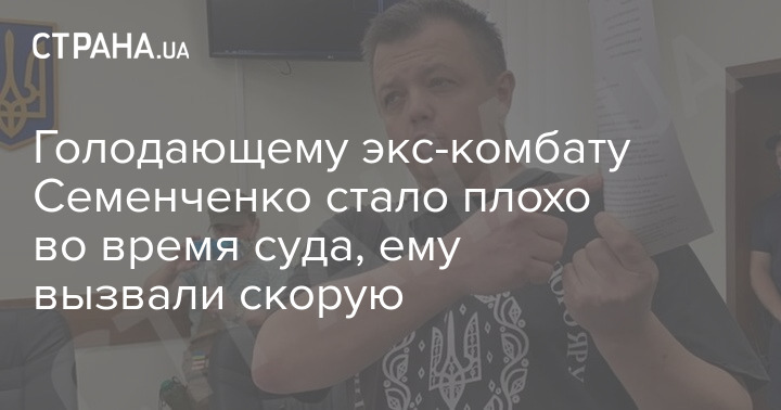 Бывшему командиру батальона "Донбасс", экс-нардепу Семену Семенченко, которого подозревают в создании частной военной компании, внезапно стало плохо во время судебного заседания в Соломенском суде Киева в четверг, 2 сентября. О плохом самочувствии судье во время своего выступления сообщил сам Семенченко, который еще 20 августа заявил о бессрочной голодовке и с тех пор ее придерживается. Судья объявил перерыв до 14:00, а подсудимому вызвали скорую помощь