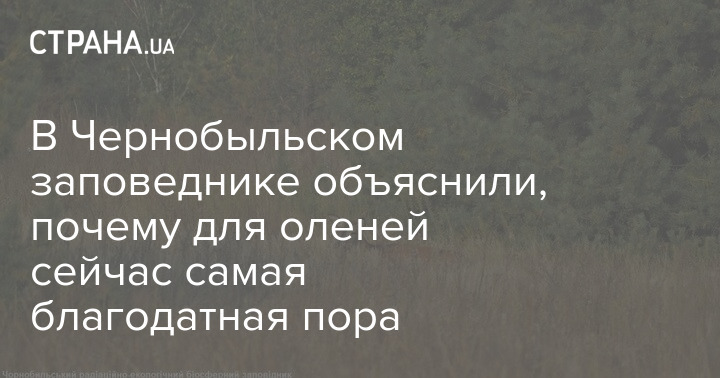 В Чернобыльском радиационно-экологическом биосферном заповеднике рассказали, что для оленей зоны отчуждения ЧАЭС сейчас наступили самые благодатные и комфортные деньки. Это объясняется тем, что спала жара, исчезли кровососы, а корма вокруг вдоволь.