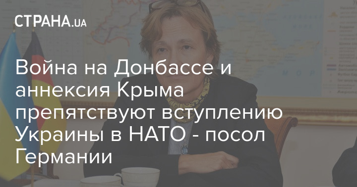 Посол Германии в Украине Анка Фельдгузен заявила, что война на Донбассе и аннексия Россией Крыма является препятствием вступлению Украины в Североатлантический Альянс (НАТО).