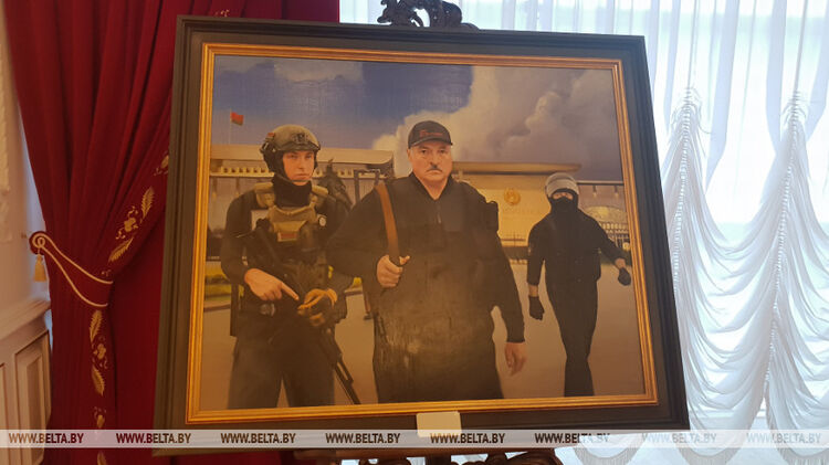 В минском Дворце независимости Беларуси выставили картину Бацьки с автоматом