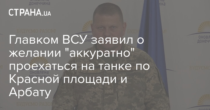 Главнокомандующий Вооруженными силами Украины Валерий Залужный заявил, что хотел бы проехаться на танке по Красной площади Москвы и по Арбату (одна из центральных улиц Москвы).