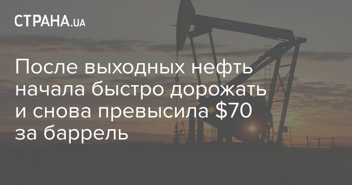 После выходных нефть начала быстро дорожать и снова превысила $70 за баррель