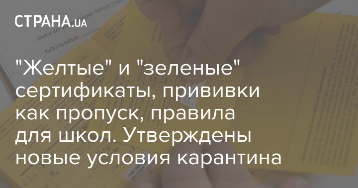 "Желтые" и "зеленые" сертификаты, прививки как пропуск, правила для школ. Утверждены новые условия карантина