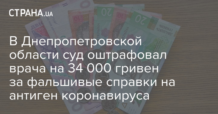 В Днепропетровской области суд оштрафовал врача на 34 000 гривен за фальшивые справки на антиген коронавируса