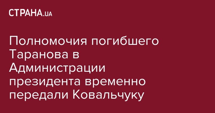 Первому заместителю главы Администрация президента Виталию Ковальчуку временно поручено курировать силовой блок вместо трагически погибшего заместителя главы АП Андрея Таранова.