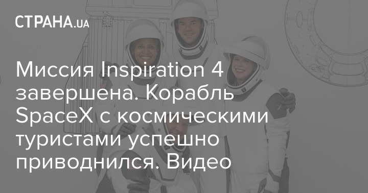Миссия Inspiration 4 завершена. Корабль SpaceX с космическими туристами успешно приводнился. Видео