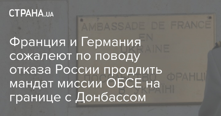 Франция и Германия выразили сожаление по поводу решения России не продлевать мандат миссии ОБСЕ на российских пунктах пропуска Донецк и Гуково через границу с Украиной.
