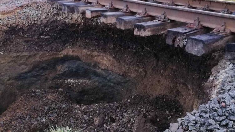 Провал заметили под железнодорожным полотном 19 сентября. Фото: Укрзализныця