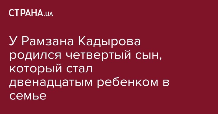 Глава Чеченской Республики Рамзан Кадыров вновь стал отцом. Жена подарила ему сына Абдуллаха. Об этом в своем Instagram сообщил спикер парламента Чечни и помощник Рамзана Кадырова Магомед Даудов.