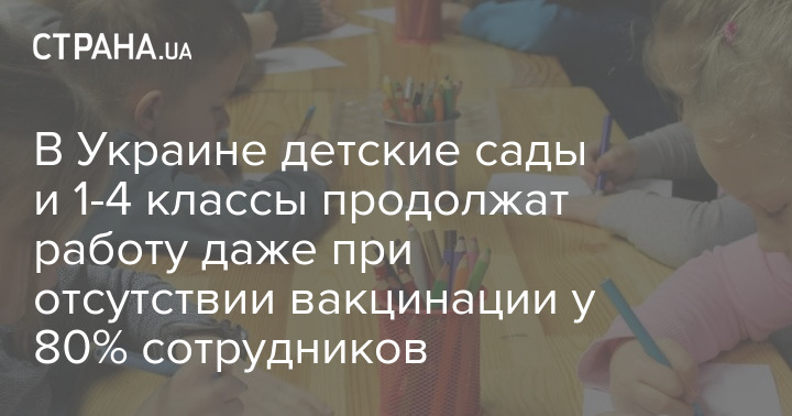 При введении в Украине "желтой" зоны карантинных ограничений необходимость наличия 80% вакцинированных сотрудников не распространяется на детские сады, спецзаведения общего среднего образования, а также 1-4 классы начальной  школ. Об этом сообщил глава Министерства образования Сергей Шкарлет.