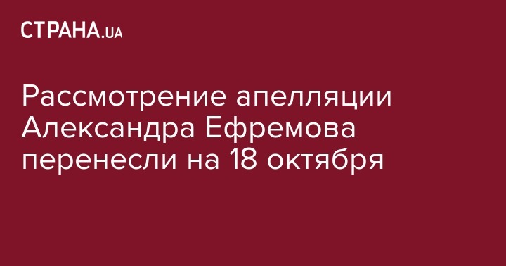 Рассмотрение апелляции на арест бывшего главы фракции Партии Регионов вновь перенесено. На этот раз Апелляционный суд Киева перенес рассмотрение его апелляции на 18 октября, передают Украинские новости.