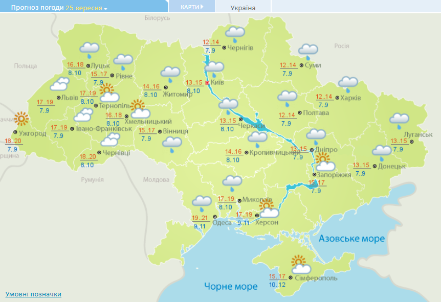 В субботу в Украине станет теплее, но дожди не уйдут. Карта погоды по областям
