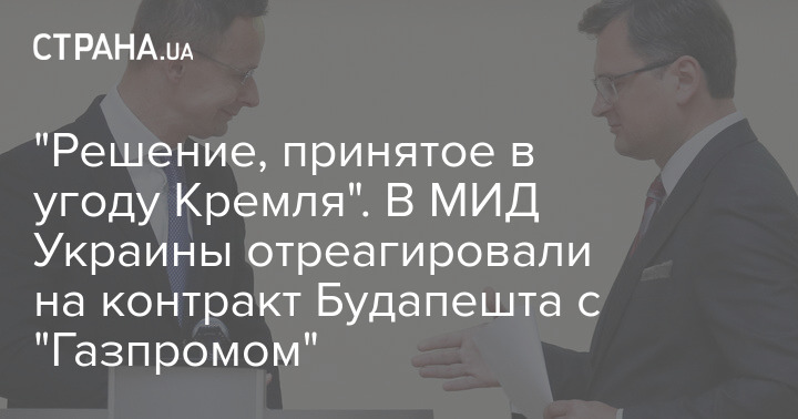 "Решение, принятое в угоду Кремля". В МИД Украины отреагировали на контракт Будапешта с "Газпромом"