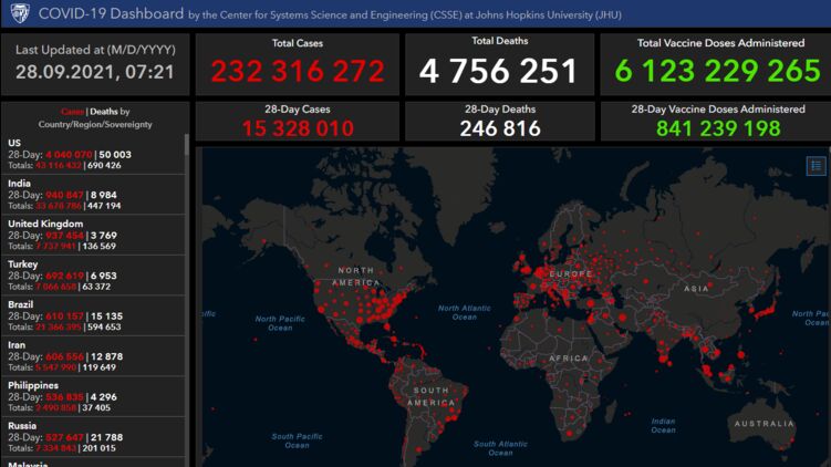 А по данным университета имени Хопкинса на утро вторника на Земле уже 232 316 272 зараженных с начала пандемии.