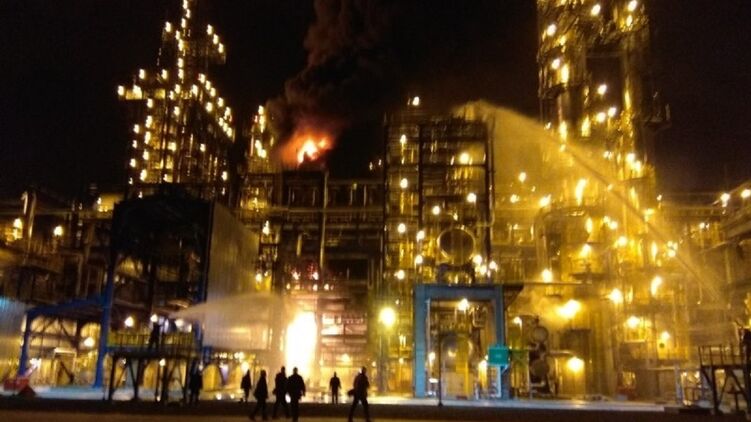 В Беларуси вспыхнул сильный пожар на нефтеперерабатывающем заводе. Фото