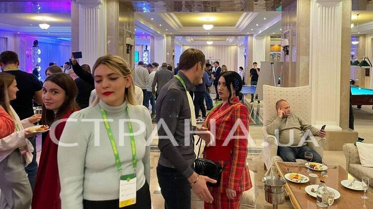 В отеле "Риксос Прикарпатье", где проходят выездные сборы пропрезидентской партии, народные депутаты из "Слуги народа" пригласили журналистов на "смарт-ужин".