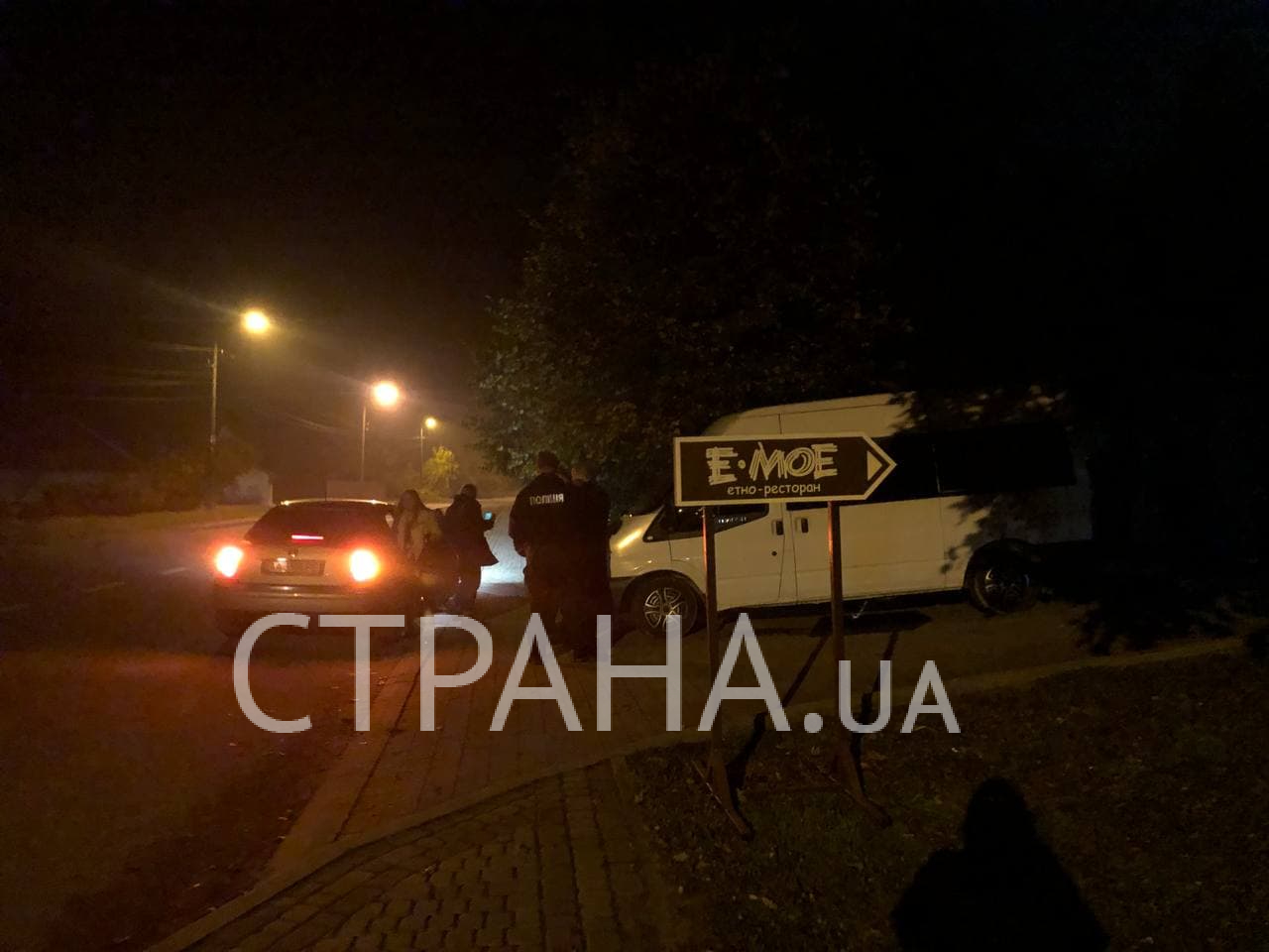 Основной вход в ресторан "Ё-моё", где часть фракции "Слуга народа" празднует корпоратив, уже закрыли на вход и выход. Перед воротами стоят правоохранители и служебная полиция.