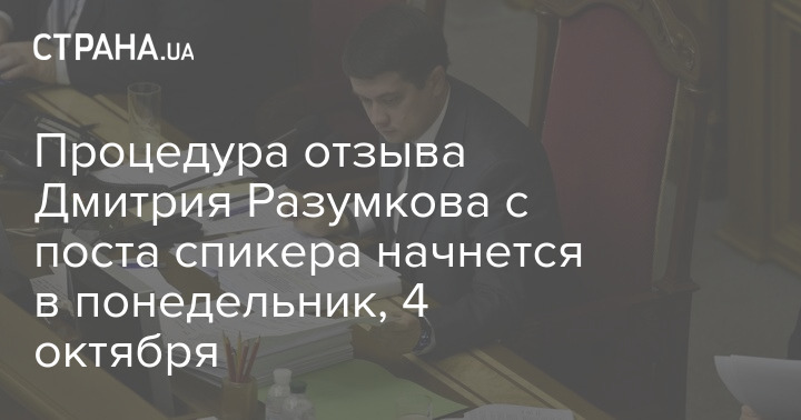 4 октября, в понедельник, начнется процедура отзыва Дмитрия Разумкова с поста спикера. Фото: Страна