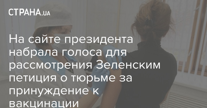 На сайте президента набрала нужное для рассмотрения Владимиром Зеленским число голосов петиция, призывающая ввести уголовную ответственность за принудительную вакцинацию.