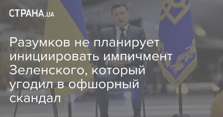 Председатель Верховной Рады Украины Дмитрий Разумков не собирается инициировать импичмент президента Украины Владимира Зеленского, вокруг которого разгорелся офшорный скандал.