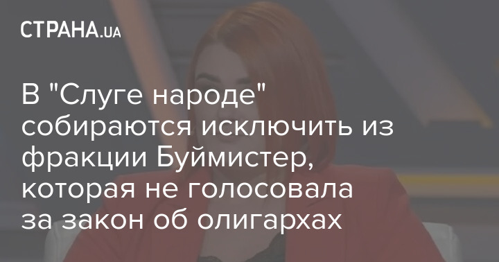 Народного депутата Людмилу Буймистер, которая проголосовала против законопроекта об олигархах, собираются исключить из фракции "Слуга народа".