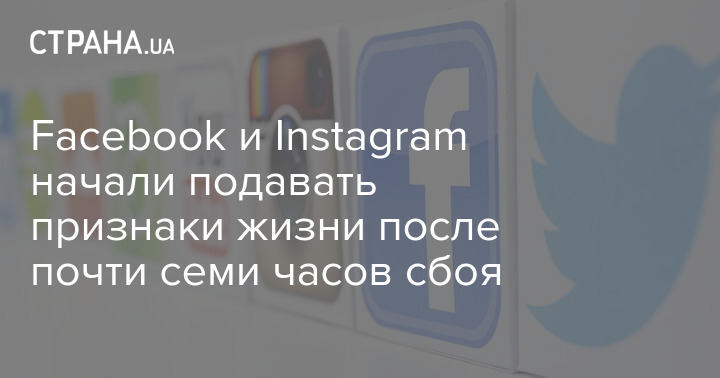 Пользователи начинают сообщать о возобновлении работы социальной сети Facebook после масштабного сбоя, который продлился около семи часов. У части пользователей также заработали соцсеть Instagram и мессенджер WhatsApp.