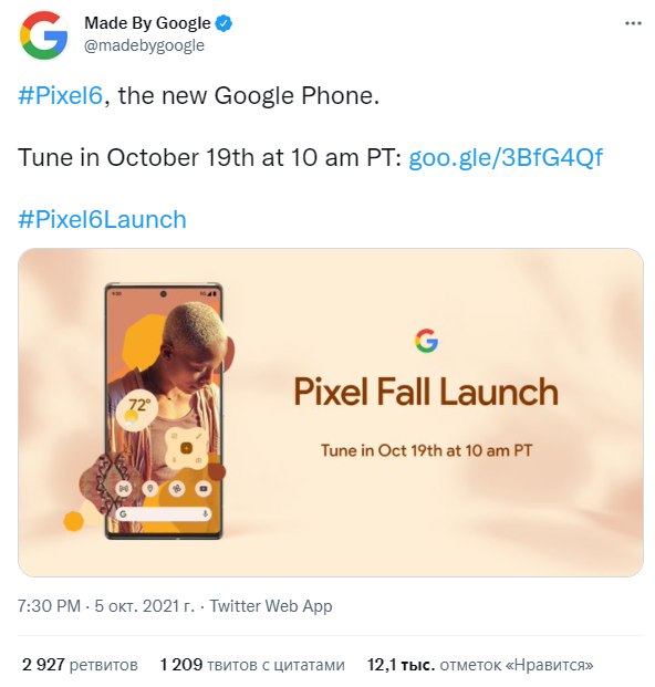 "19 октября мы официально представляем вам Pixel 6 и Pixel 6 Pro - полностью обновленные телефоны Google. Они работают на базе Tensor, первого оригинального мобильного чипа Google, они быстрые, умные и безопасные. И они приспосабливаются к вам", - пишут в заявлении компании.