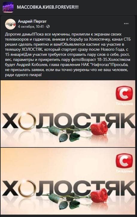В сети появилась новая схема мошенничества. Девушкам предлагают отправить свои фото для участия в шоу "Холостяк", чтоб побороться за сердце экс-главы правления НАК "Нафтогаз" Андрея Коболева, который якобы участвует а этом шоу, запланированном на начало будущего года.