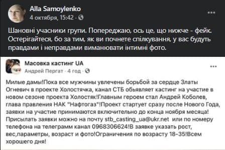 Объявления такого характера в группах для актеров массовки появились 4 октября. Тогда же в комментариях пользователи напомнили, что кастинг на "Холостяка" уже закончился, и скинули в комментарии предупреждения из смежных групп о том, что действуют мошенники.
