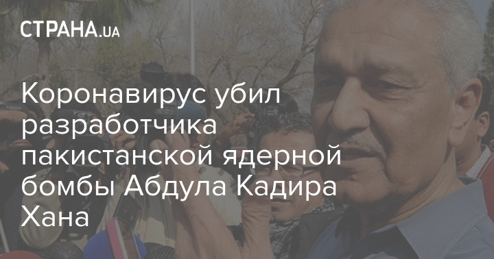 Пакистанский физик-ядерщик, руководитель пакистанской ядерной программы Абдул Кадир Хан, скончался на 86-м году жизни от последствий перенесенной коронавирусной инфекции.