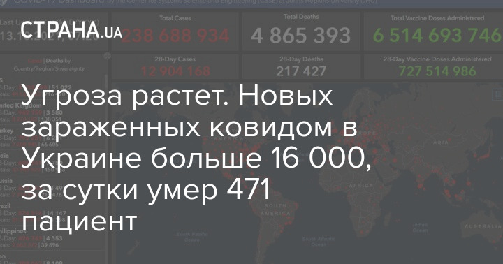 Угроза растет. Новых зараженных ковидом в Украине больше 16 000, за сутки умер 471 пациент