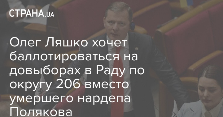 По округу 206 в Черниговской области, по которому зашёл в Верховную Раду умерший на прошлой неделе нардеп Антон Поляков, хочет баллотироваться лидер "Радикальной партии Украины" Олег Ляшко.