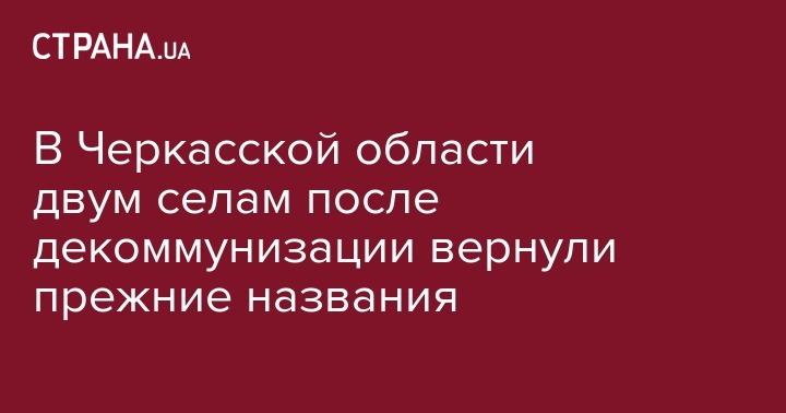 В Черкасской области два села, переименованные в рамках декоммунизации, получили прежние названия в связи с массовым недовольством местного населения. Об этом сообщает "УНИАН".
