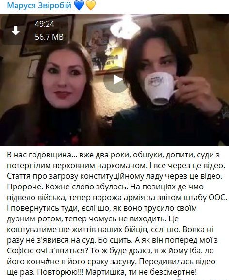 Два года назад нардеп партии Порошенко София Федына и военный волонтер Маруся Зверобой (настоящее имя Елена Беленькая) записали свой скандальный стрим с угрозами Владимиру Зеленскому