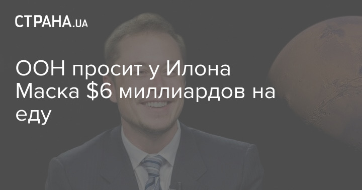 У основателя компаний Tesla и SpaceX Илона Маска попросили $6 млрд на борьбу с угрозой голода и его последствиями для человечества. С просьбой о финансовой помощи к нему обратился исполнительный директор Всемирной продовольственной программы (ВПП) ООН Дэвид Бизли.